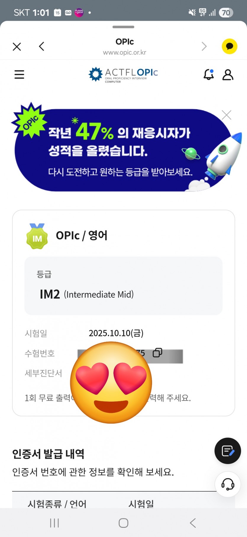 지금44살 승진하려면 IM1 성적표나 토익500점패쓰